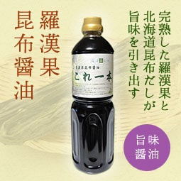 羅漢果昆布醤油 「これ一本」羅漢果薬膳調味料「羅漢果ブイヨン」は甘さを抑えた調味料なので、煮物やスープにも最適。上品な味付けが好みの方にも好評です。